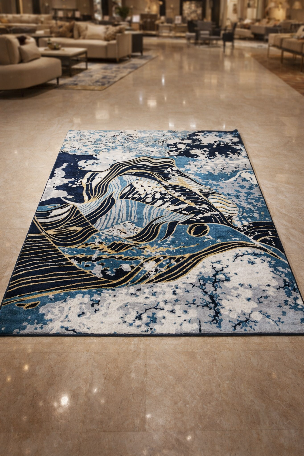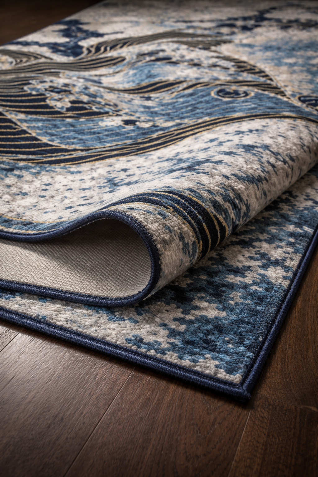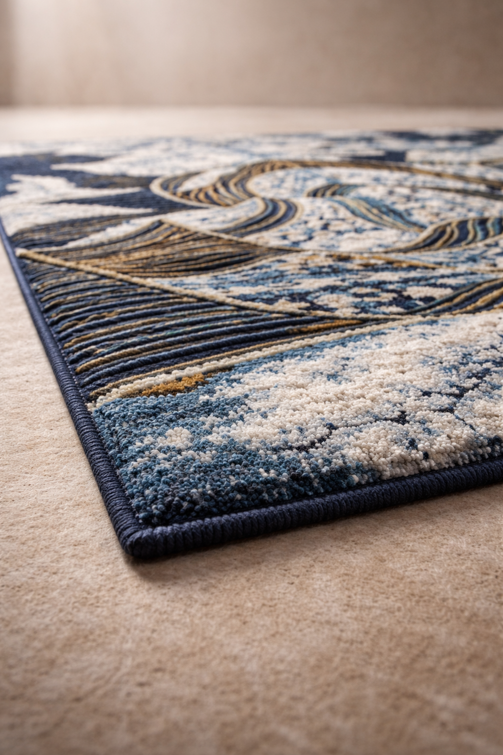Deep blue, ivory, and gold tones