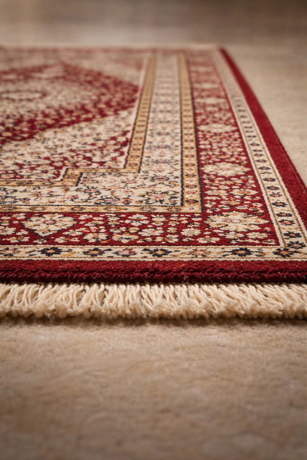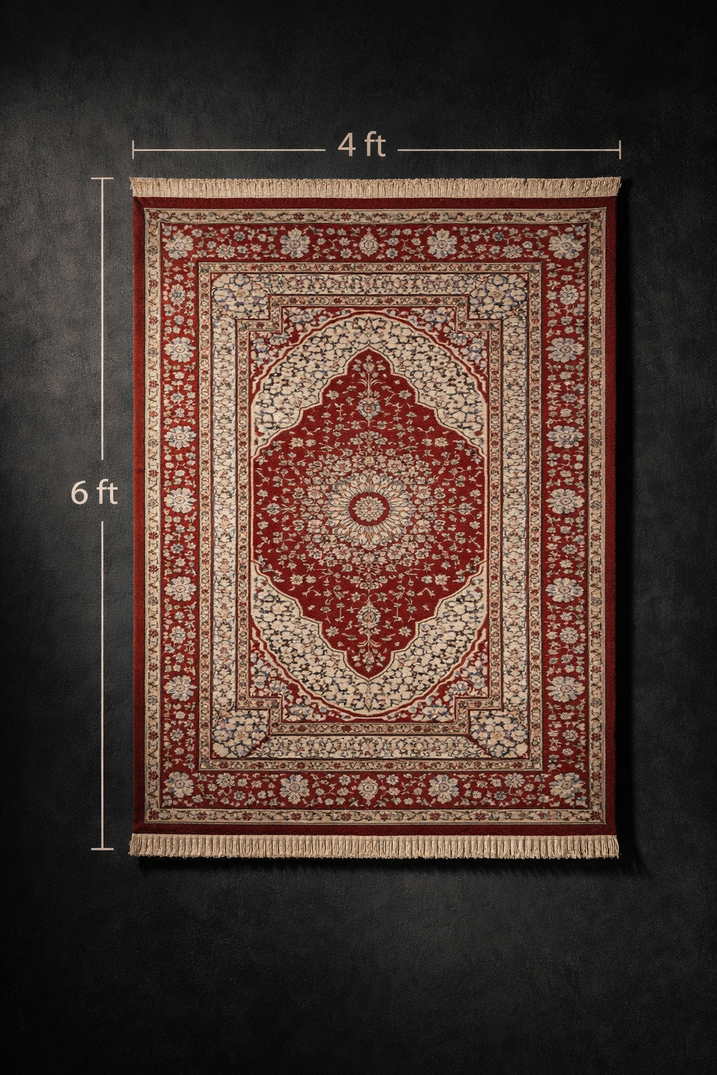 Rich red field with intricate floral medallion