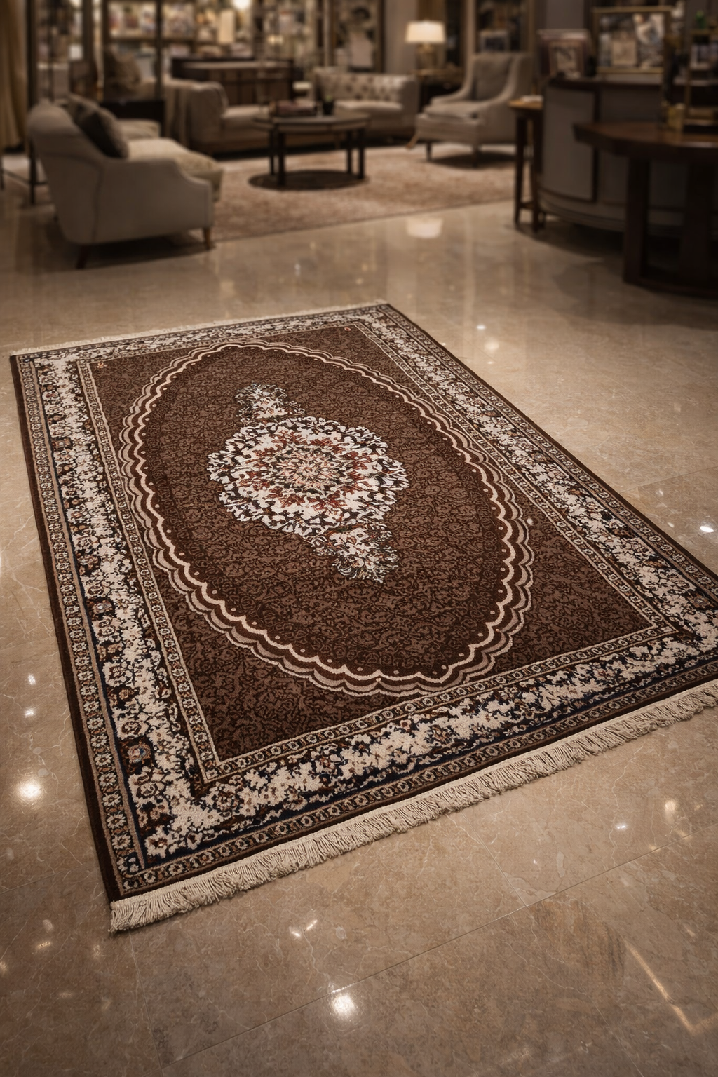 Rich brown with ivory detailing