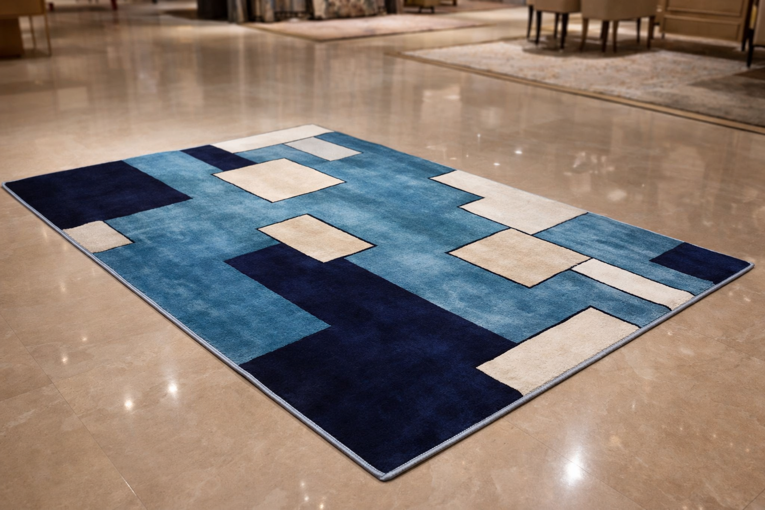 Elegant combination of deep blue, teal, and beige tones for a balanced and visually striking look